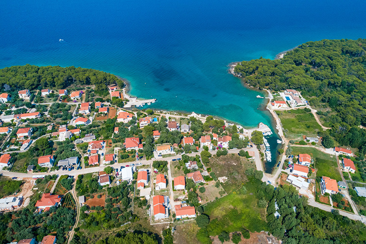 With 336 inhabitants, Sutomišćica is located in a large sheltered bay that is a haven for boaters (Olive Island Marina is one of the best marinas on the Adriatic). In the village is the baroque summer residence of the Zadar noble family Lantana from the 17th century, the Church of St. Gregory from the 14th century and the Early Christian Church of St. Euphemia, who is also the patron saint of the village. The professionally equipped football field in the centre of Sutomišćica by the sea is the pride of the island football club St. Michael. To the southwest of the village is the Vela Glava hill (238 m), offering a magnificent view of the Zadar archipelago and Ravni kotari. Sutomišćica is located on the regional road running along the island. The Lantana summer residence with its spacious park and chapel has all characteristics of a Baroque Venetian construction. The ceremony of handing over the duty of the Venetian dodge for Dalmatia and Albania was organized in the same. |
